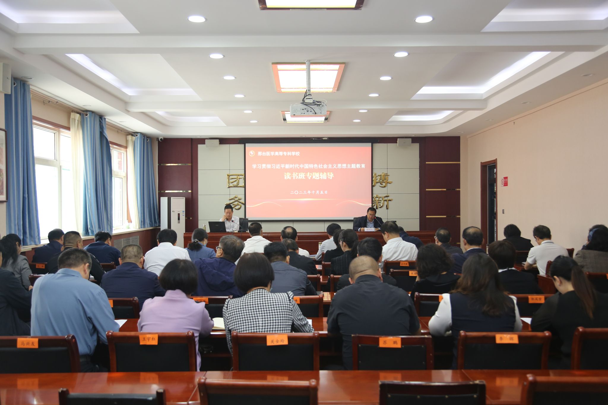 按照学校学习贯彻习近平新时代中国特色社会主义思想主题教育安排,10月5日上午,党委副书记杜成旭以《从百年党史汲取奋进力量》为题作专题辅导讲座。学校和附属医院处级以上干部参加学习,党委委员、纪委书记赵建文主持。讲座中,杜成旭副书记以为什么学习党史、怎样学习党史为切入点,带领大家回顾了党史的发展脉络,生动讲解了新民主主义革命时期、社会主义革命和建设时期、改革开放和社会主义现代化建设时期党的发展历程和历史成就。...