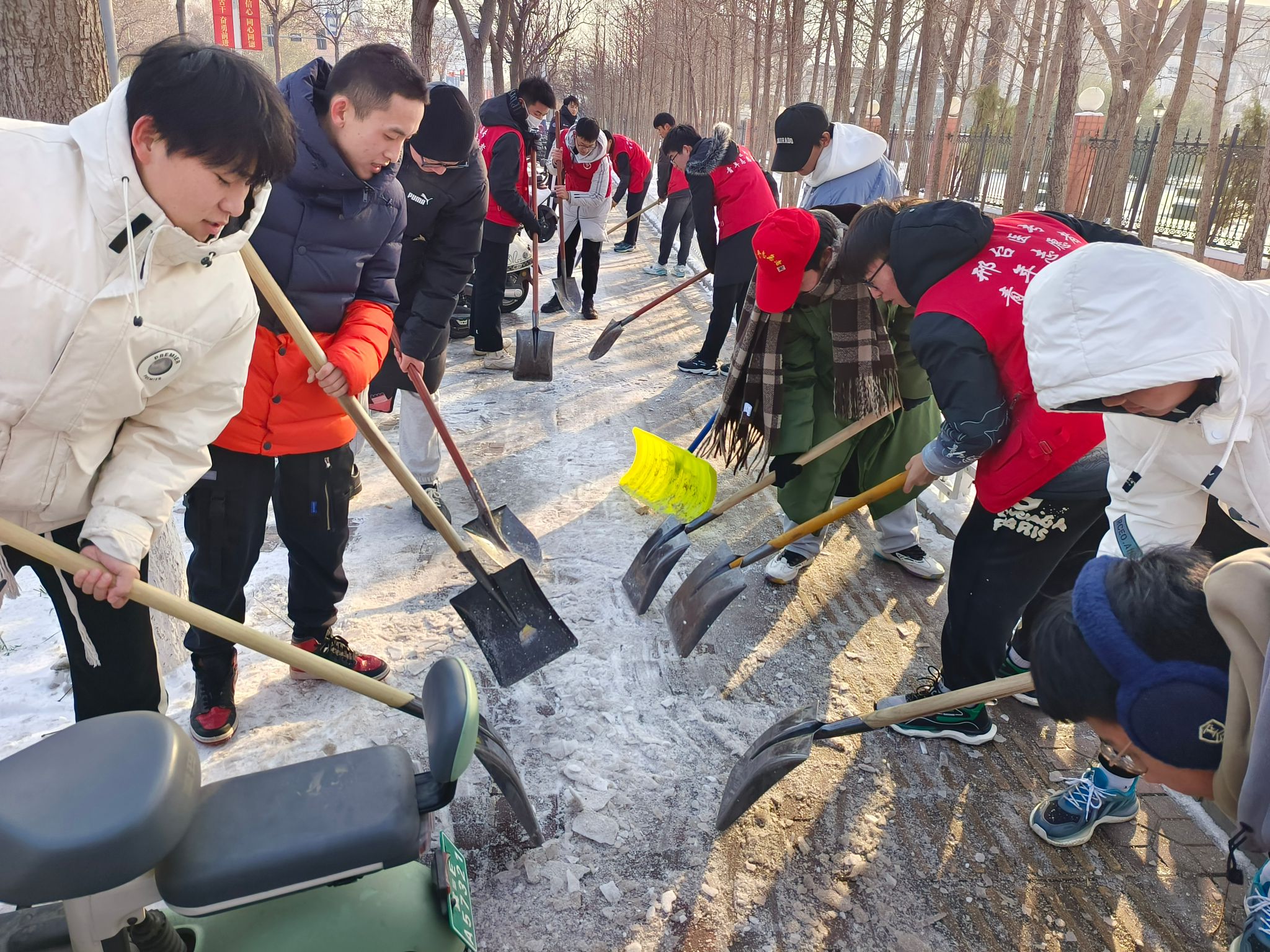 为积极响应我市“同扫门前雪 共建温暖城”倡议,近日,开元中医系组织120余名师生志愿者到石安高速小区、达活泉小学、医专生活区、钢铁北路等地开展了“冬日暖心·扫雪行”志愿服务活动。志愿者们不顾地湿路滑和寒风凛冽,带着铁锹、扫把等工具来到活动地点,经过简单分工就开始了清雪行动,大家冒着零下十几度的严寒,不叫苦累,干得热火朝天,全力清除人行道、居民区的积雪寒冰,经过2个多小时的努力,结冰难行的道路变成了一条条洋溢着温情的安全之路。...