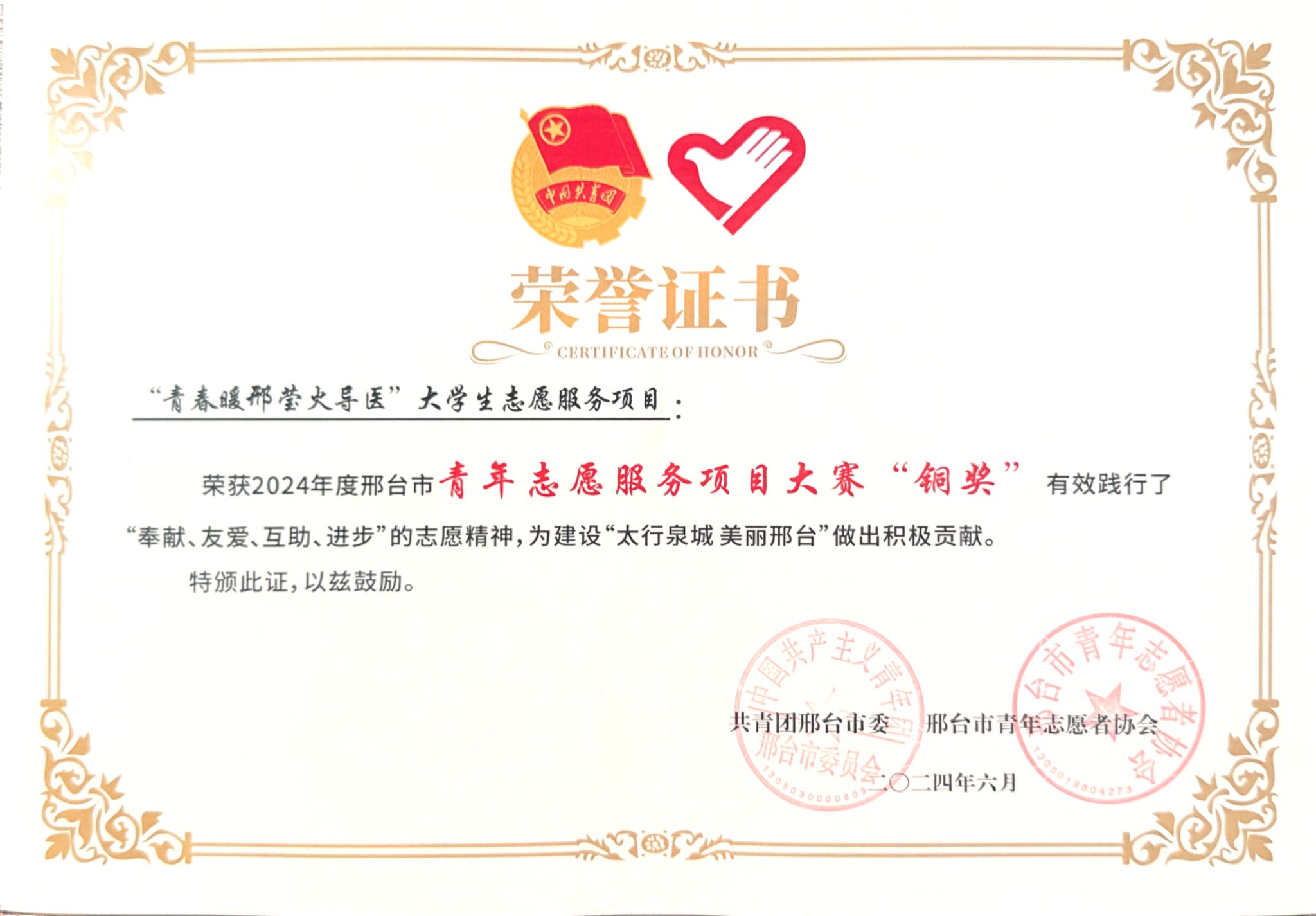 近日,由共青团邢台市委、邢台市青年志愿者协会联合开展的2024 年青年志愿服务项目大赛圆满落幕,开元荣获铜奖1项、优秀奖1项。此次大赛重点围绕乡村振兴、应急救援、阳光助残、为老服务等领域树立典型、评选优秀。赛事启动以来,团委倾力打造“宣传+培育+比赛实践”的赛事成长线,精心挑选参赛项目,不断优化项目内容,项目质量显著提升。经初、复赛激烈角逐,开元大学生青年志愿者协会申报的“青春暖邢 萤火导医”项目获得为老服务类铜奖,...
